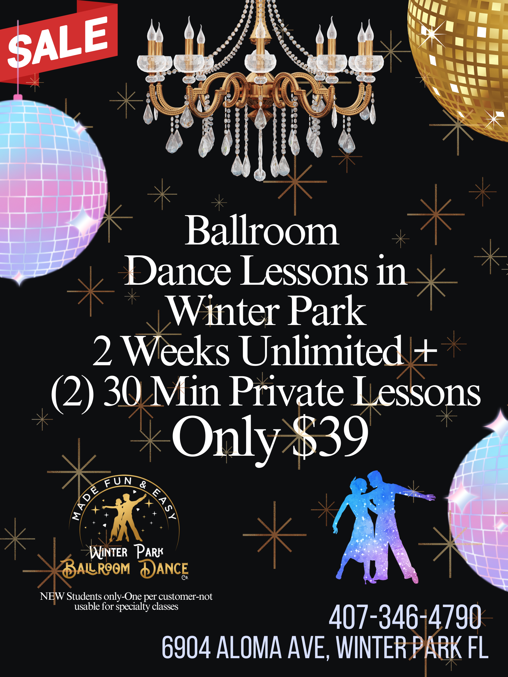 • $100 Weekly Unlimited – Includes all group classes and 1 private lessonJoin Chris, Meg, and Mark for a fun and well-rounded lineup of group classes, featuring a blend of patterns from all the major ballroom dance syllabi.
